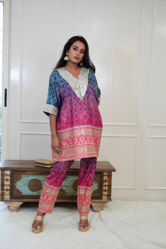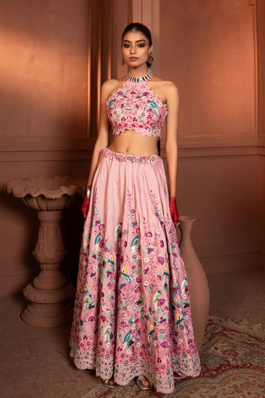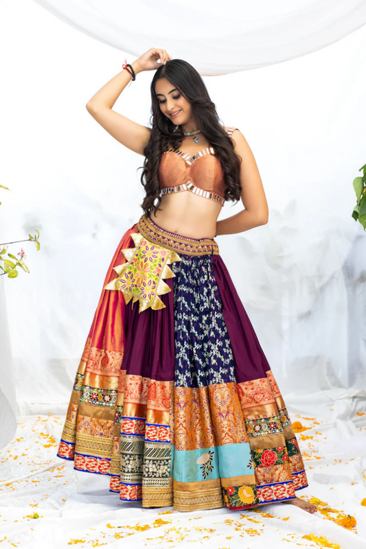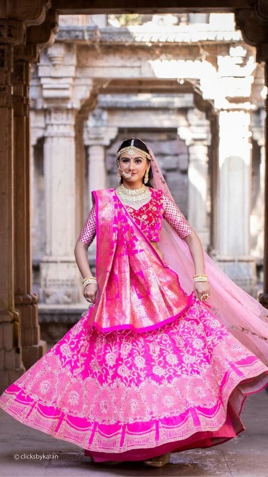 Banarasi Silk Lehenga with Pink Shimmer, Mirror Blouse & Organza Dupatta