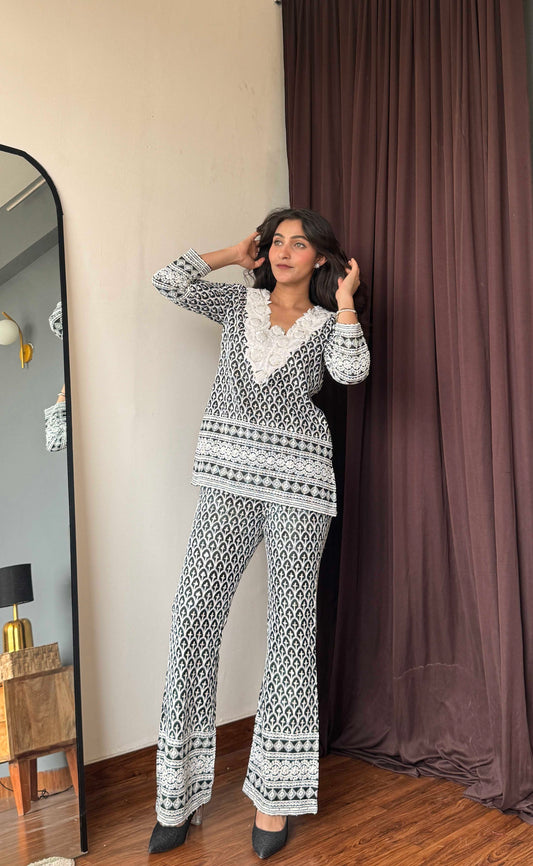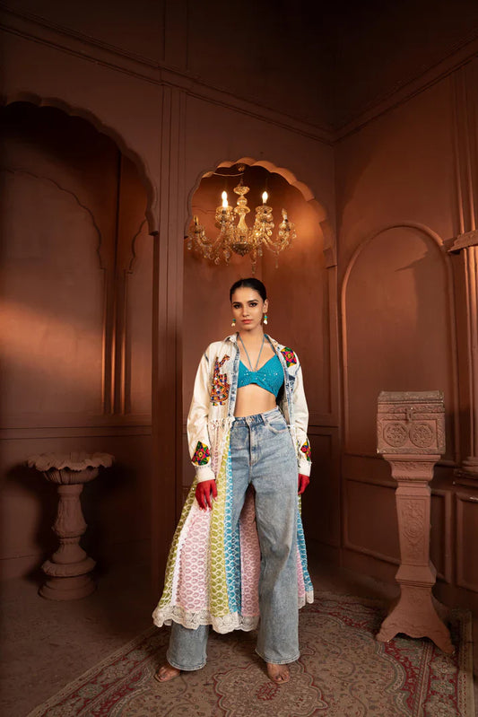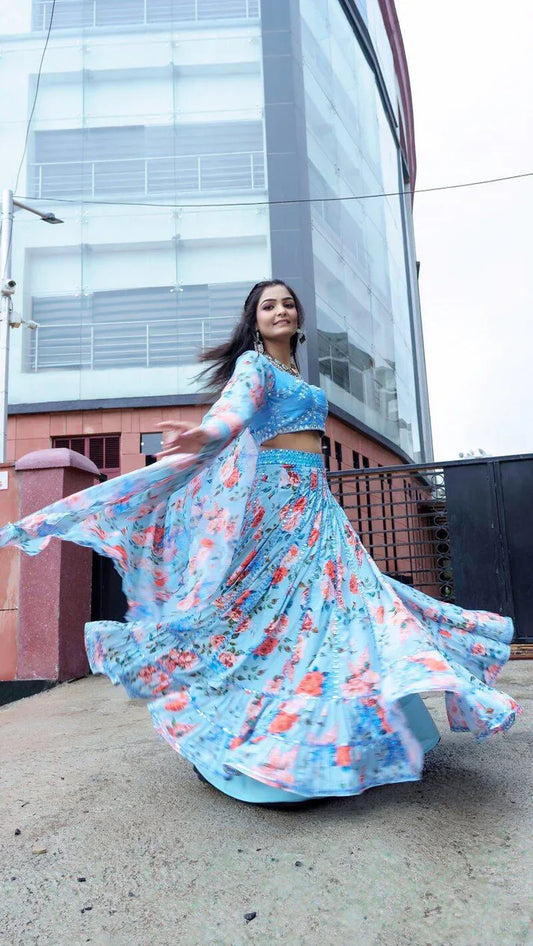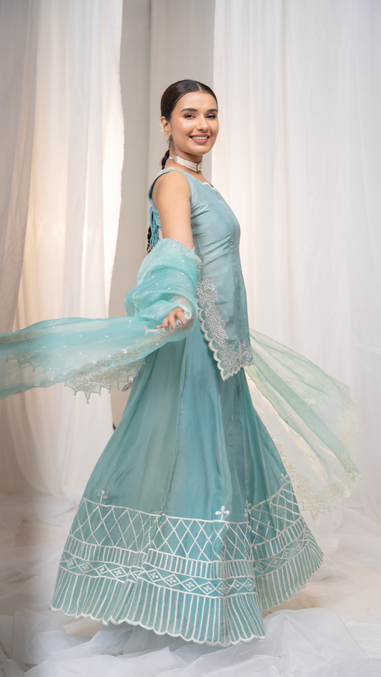 Bubbly Blue Sharara Set with Elegant White Embroidery Detail