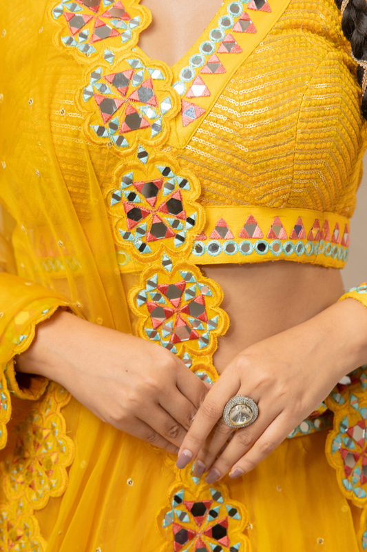 Delightful Organza Lehenga with Mirror Work