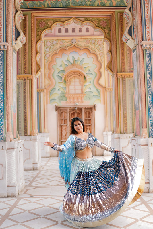 Sold outOdette Blue Sequence Lehenga Choli