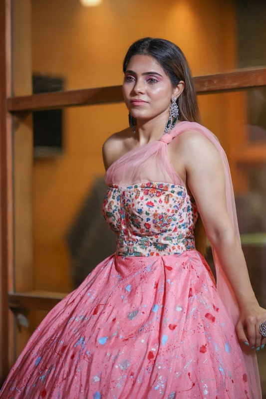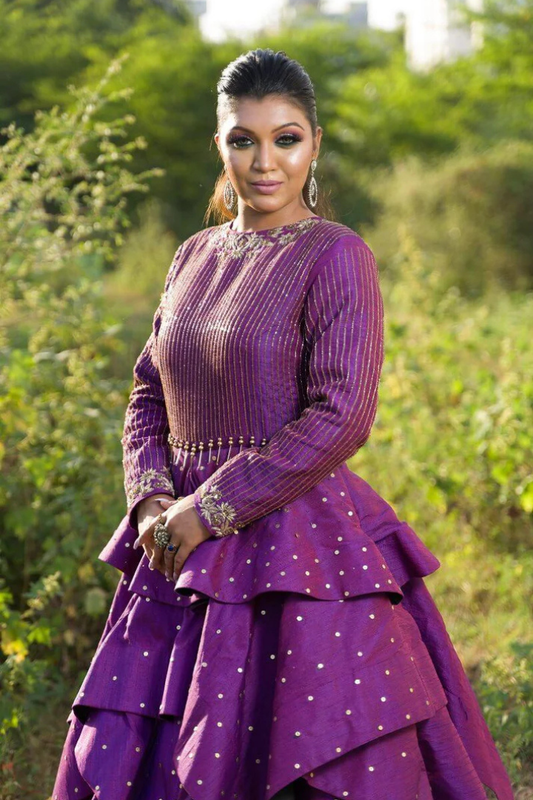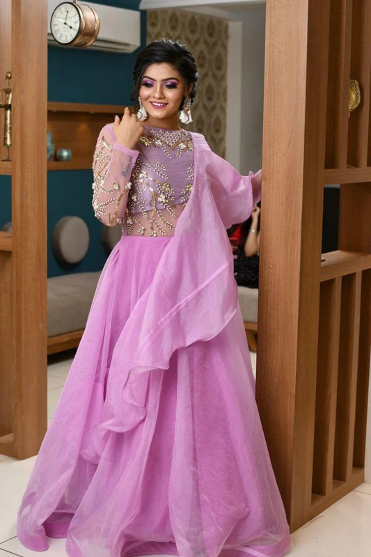 Lilac Organza Lehenga Set with Ruffle Blouse