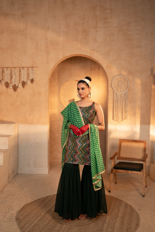 Tota Lime Green Kurta Sharara Set