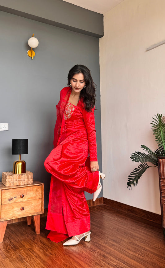 Red Corset Lehenga Dupatta