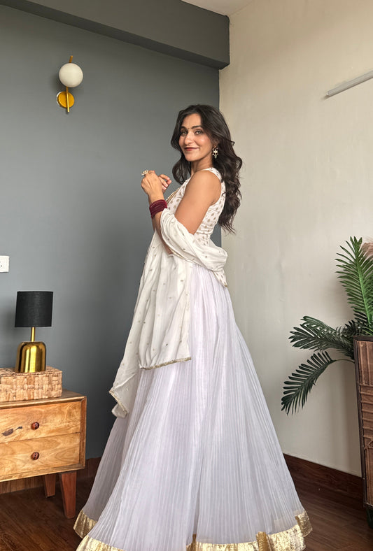 White Gold Anarkali Gota
