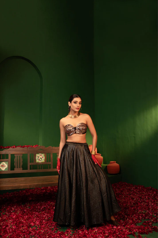 Devi Metal Gold Lehenga in Gajji Silk & Organza