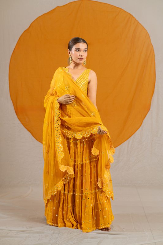 Opulent Granola Kanch Mirror Lehenga Choli with Dupatta