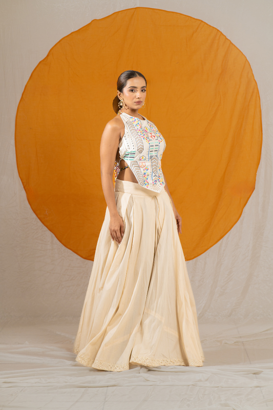 Silk Base Safed Rangeen Lehenga Choli
