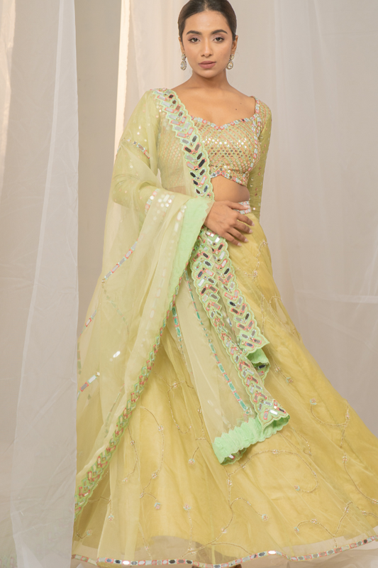 Hare Rang Ka Organza Lehenga