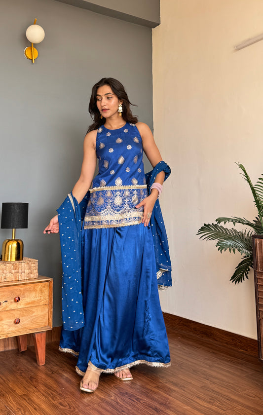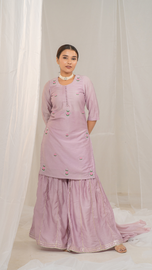 Chanderi Silk Kurta and Sharara Set with Elegant Embroidery and Chiffon Dupatta