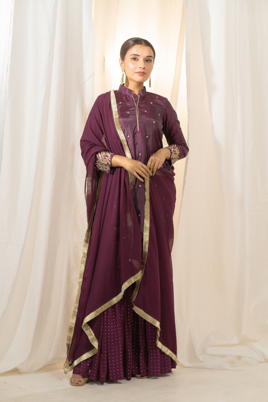 Magenta Zari Silk Kurta Sharara with Dupatta