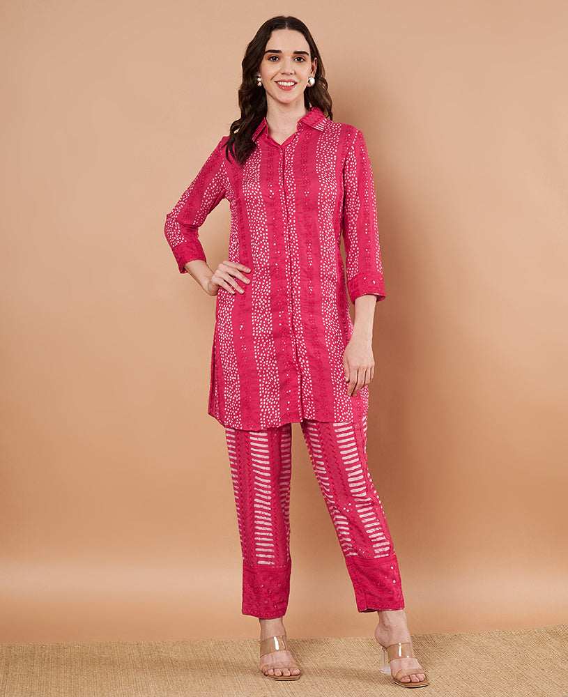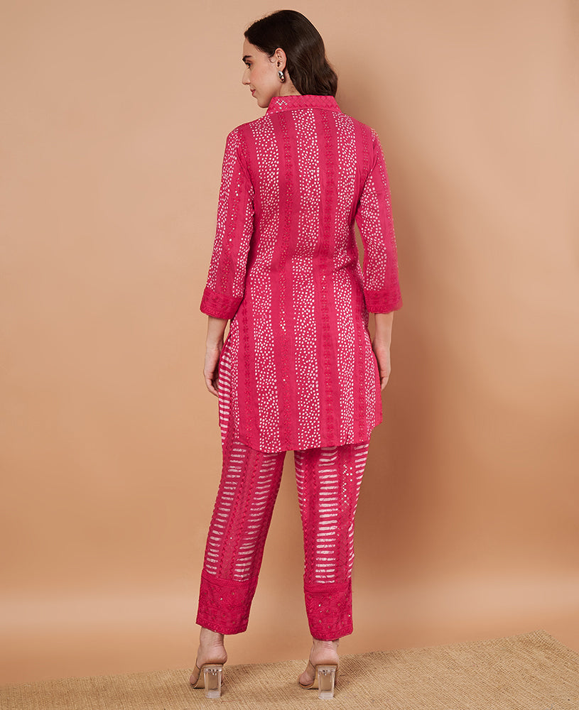 Red Lotus Mirror Kurta Pant