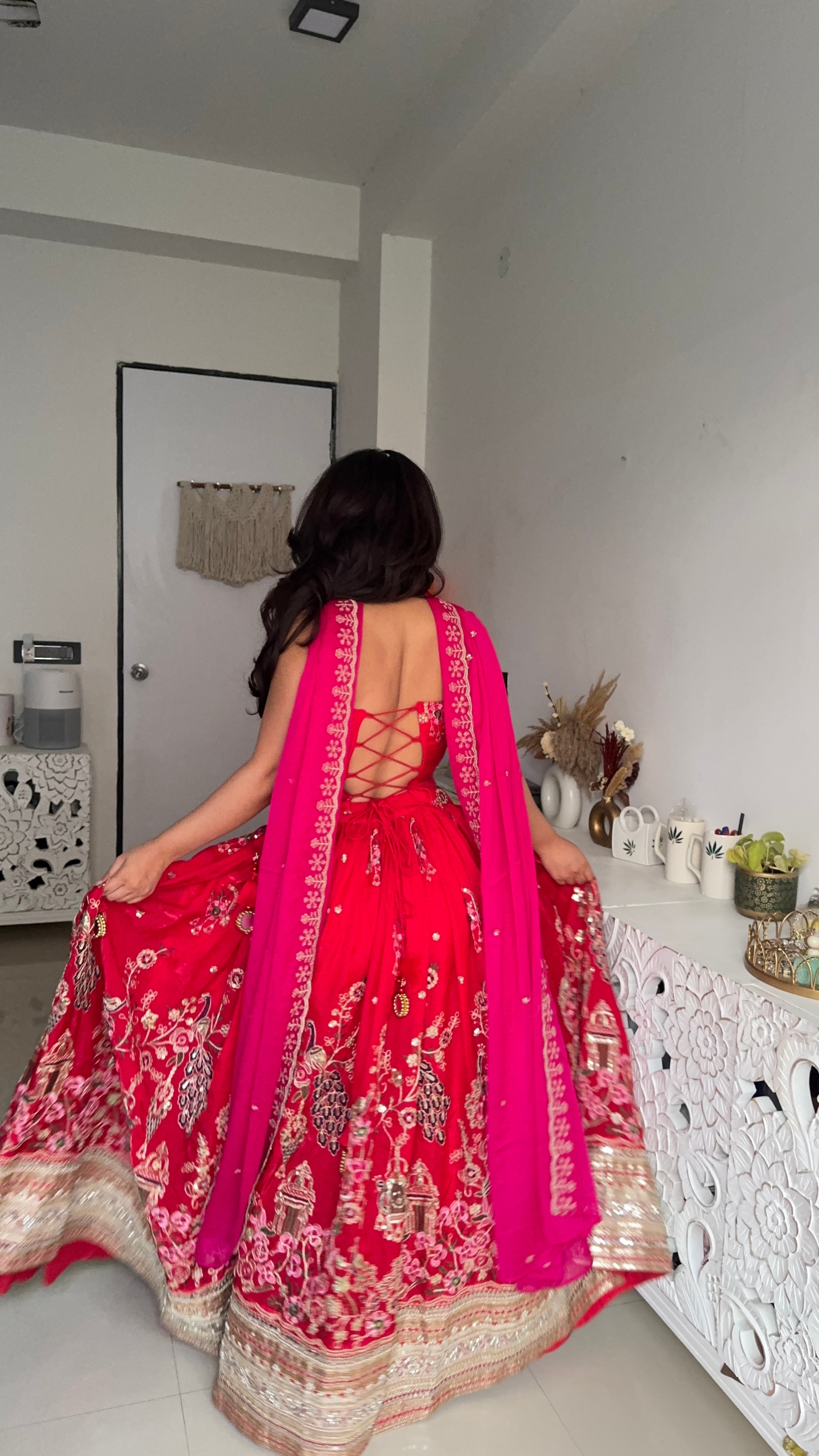 The rich red hue symbolizes love, royalty, and celebration, making it perfect for weddings, receptions, and grand festive occasions. This outfit offers both grandeur and comfort, ensuring you look effortlessly regal on your special day.