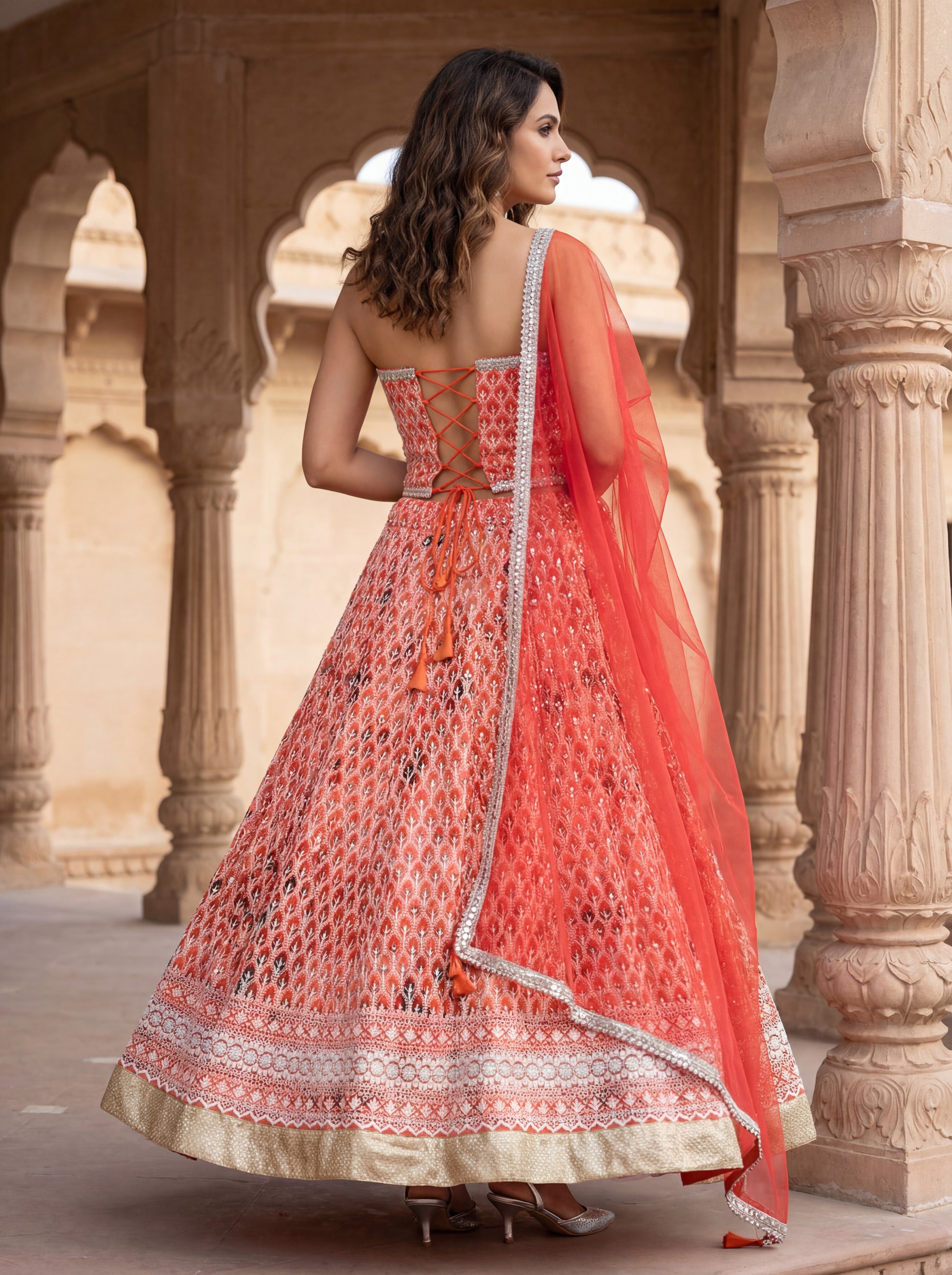 Make an unforgettable statement with our Noor-e-Ziya Rust Embroidered Lehenga Set, crafted in luxurious silk and designed in a rich rust orange hue that radiates royal elegance. Featuring a beautifully structured corset-style blouse, a richly flared lehenga adorned with intricate motifs, and a soft flowing dupatta, this ensemble blends heritage charm with modern sophistication.